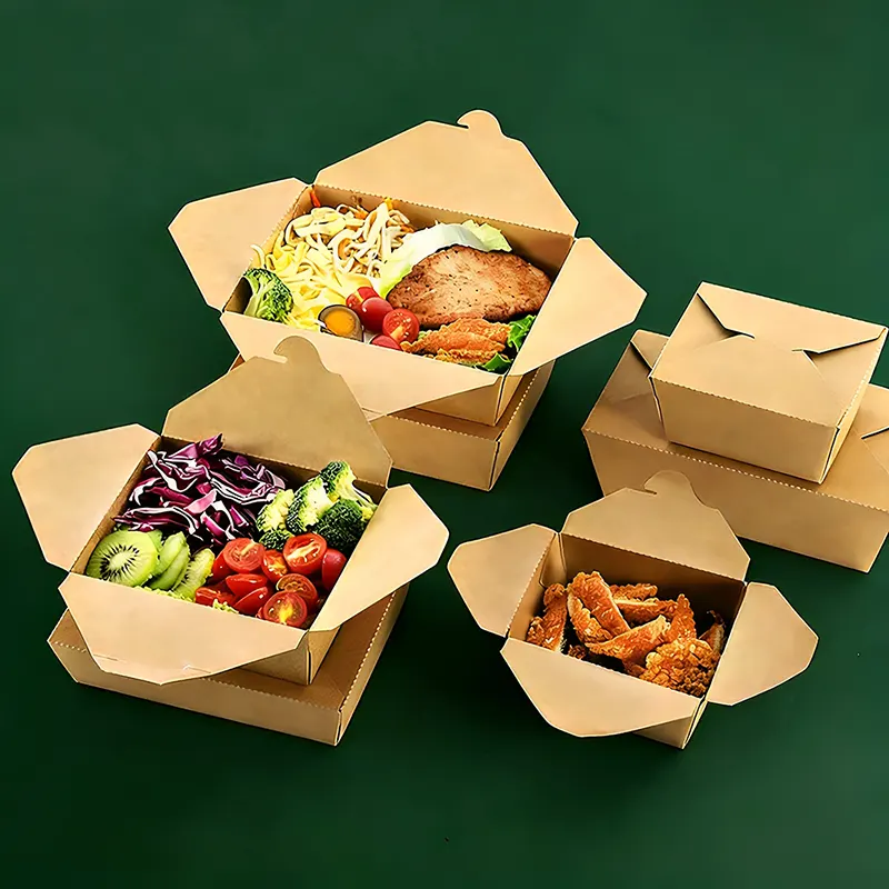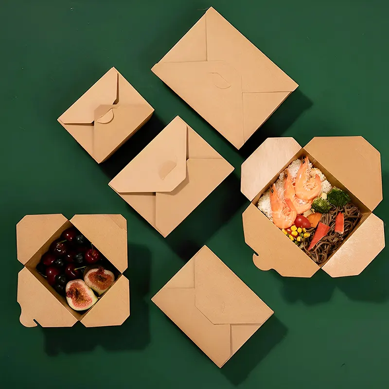 This 1000ml Four-flap Paper Food Box is fully tailored and has a simple shaping process, which makes it highly cost-effective. Of course, 1000ml Four-flap Paper Food Box for Fried Rice also possesses all the advantages of paper lunch boxes. For food without soup, I would recommend that customers purchase it.