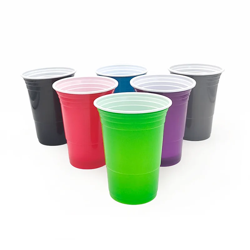 16oz double-color disposable plastic cup is a quality daily and party-use disposable tableware. Whether used as a drinking vessel or as a toy, it is very popular. Our double-color disposable plastic cup can be customized with colors and logo printing. Using exclusive cups in the theme event can demonstrate the strength and taste of the organizers.