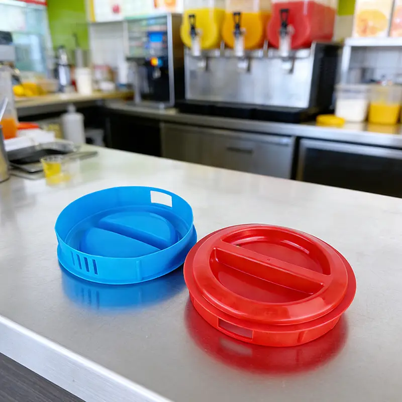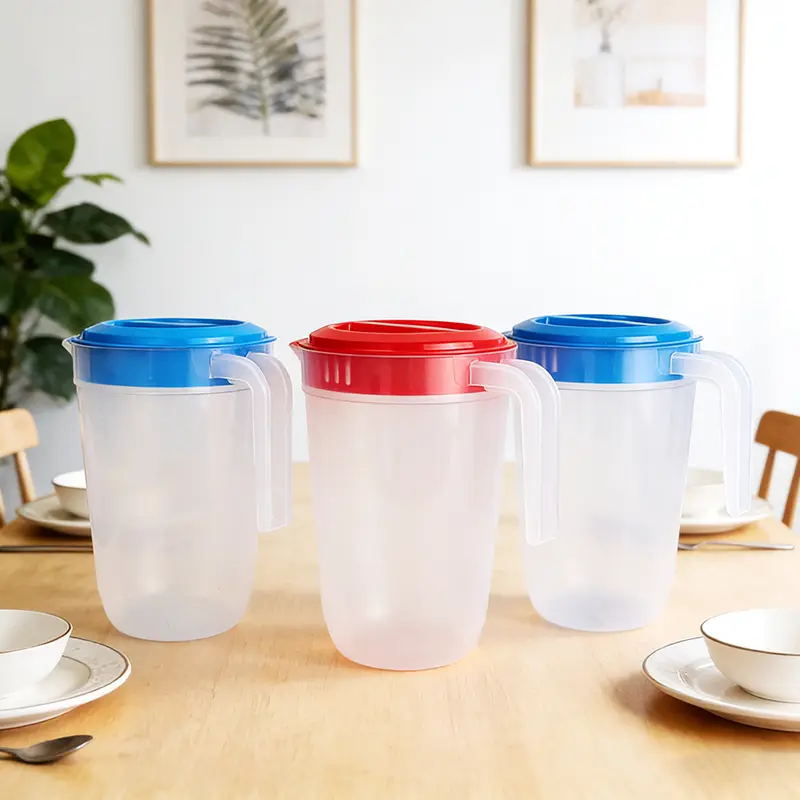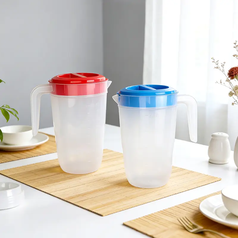 This Low Price Advanced 2L PP Commercial Plastic Pitcher for Beverage Shops are specifically designed by Ningbo Powerr for Beverage Shops. This milk white semi-transparent plastic pitcher is crafted from food-contact grade PP, boasting a soft matte finish that lets you clearly check the water level while avoiding the cold look of fully transparent versions. Its red or blue rounded lids add a bright touch, seamlessly matching Nordic, rustic and other home styles. Designed for practicality, the wide curved handle enables effortless one-handed holding. The lid’s flow-directing groove ensures smooth pouring without spills, reducing table cleaning work. With sleek lines and a narrowed bottom, it fits perfectly in refrigerator door shelves without occupying extra space. The 2-liter capacity strikes a balance, meeting commercial needs while remaining easy for staff to handle.