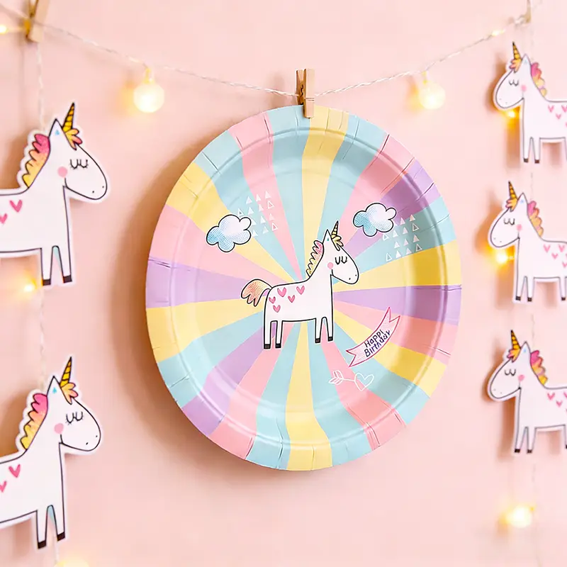 Bulk 7inch Disposable Round Paper Plate Made in China is one of NINGBO POWERR’s popular party products. We can provide customized printing services. Due to the characteristics of the product material, the design and printing can achieve a better presentation than plastic plates. 7-inch is a gold size, precisely fitting for single-portion meals and the space for creative crafting. It is not merely a container for food; it is also an ornamental element for party decoration and a canvas for parent-child handicraft creations. Each gathering and every piece of creation can retain its perfect quality in convenience. And we also have several other shapes available for your choice.