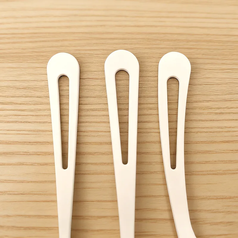 Eco-friendly Droplet-shaped Plastic Cutlery features both heat resistance and durability. The knife, fork, and spoon structure is stable, the fork tines are sharp, and the handle is smooth. It can easily handle various foods such as hot dishes and desserts, providing a usage experience consistent with traditional plastic cutlery. The design is simple and elegant, using a pure white tone, suitable for various environmentally friendly catering enterprises, themed events, and family dining scenarios. The hollow design at the tail is not only a unique design highlight but also convenient for users to hold and hang, balancing both aesthetics and practicality.