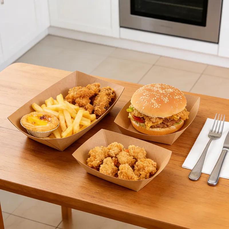 As a professional Manufacturer in China, Ningbo Powerr has Snack Kraft Boat Tray, which is extremely popular among food service professionals. Crafted from natural kraft paper with an inner film, it boasts a simple, premium look. The inner lining effectively contains sauces, soups, and oils, making it ideal for nearly all popular snacks. Its open-top, boat-shaped design fits comfortably in the palm for easy handling, and can cut transportation and storage costs. And it simplifies access to food while aiding heat dissipation. It can also accommodates irregularly shaped foods such as long fries and grilled skewers. Available in 7 versatile sizes, the trays cater to diverse portion needs. We also offer full customization for colors, printing, and material variations - all without compromising on quality and performance.