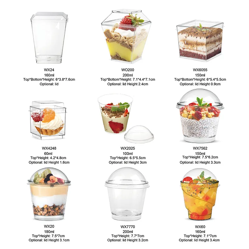 The styles are diverse and the compatibility is strong, suitable for various desserts and occasions. The items with lids are suitable for Food carrying and transportation. The small capacity style can be used as a tasting cup. The large capacity style can meet the needs of gatherings.