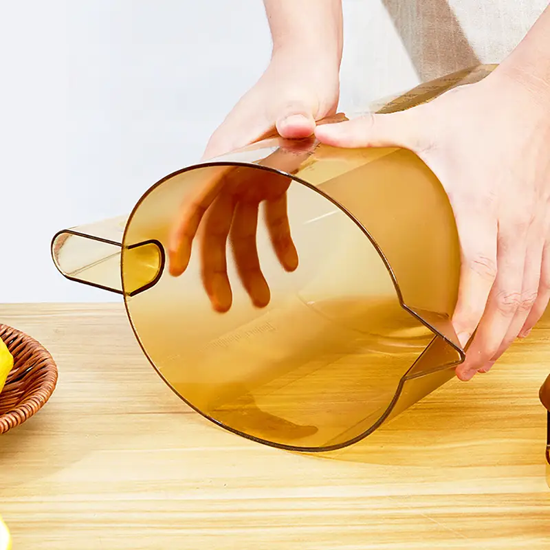 The spout of Tawny or Clear Plastic Cold Water Pitcher adopts a sharp-mouthed flow-directing design, ensuring that the water flows out smoothly and quickly, without dripping continuously. The angular geometric handles provide a solid and powerful grip. Even when filled with 5L of water, it can be held steadily without slipping. The body of the it is thickly treated, making it resistant to drops and durable. It is unlikely to deform even under daily knocks and bumps.